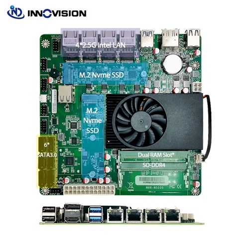 Eingebettetes 11. 4-Kern-ITX-Motherboard N5105 mit 6SATA-Dual-M2-Nvme-4intel-225-LAN-Ports für NVR-NAS-Speichers erver